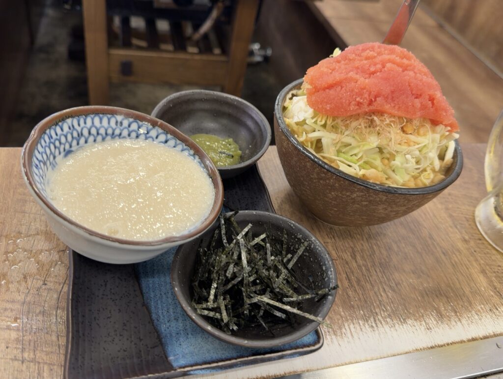 横にはとろとろの山もいも、刻み海苔、青のり。