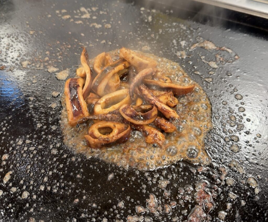 鉄板の上で、イカが踊る。