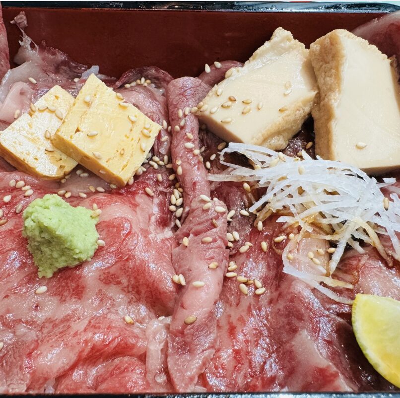 写真を見てもわかるように、重箱いっぱいに和牛が敷き詰められている。